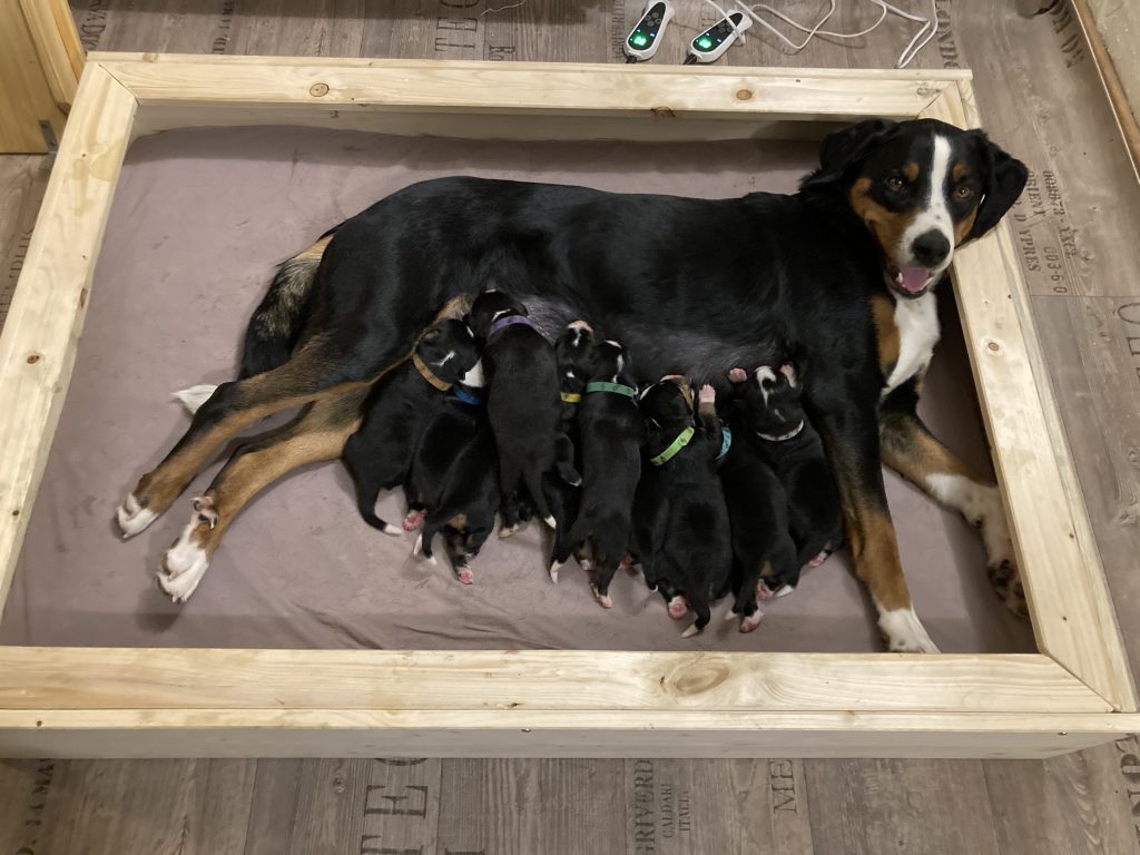 Apppenzeller-Sennenhund. Welpen, 6 Wochen alt